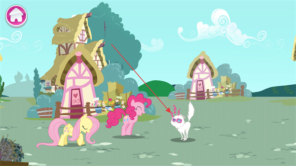 采用与动画一致的温馨卡通画风,角色形象圆润可爱,场景色彩明亮柔和,小马谷、城堡等场景细节丰富,营造出充满奇幻感的童话世界氛围。