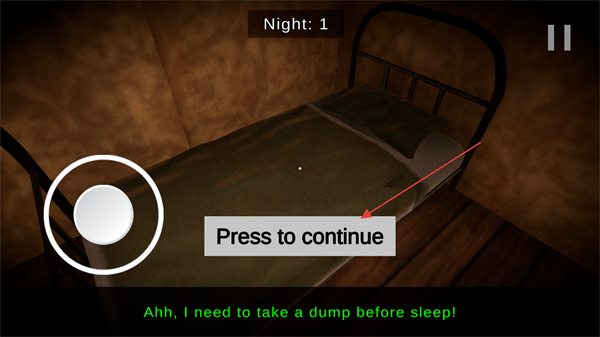 4、进入自己的房间与床铺进行交互,会有任务提示弹出,点击上方按钮继续剧情。