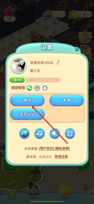 2、在设置界面中,点击背包按钮,进入背包页面。