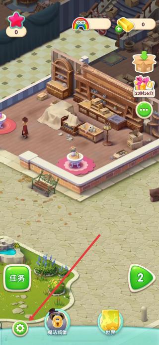 1、打开宾果消消消游戏,点击左下角的设置按钮,进入设置界面。