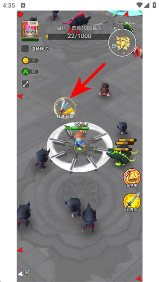 3、战斗中拾取转速升级道具,该道具可提升角色攻击转速,增强战力,助力更快击败敌人。