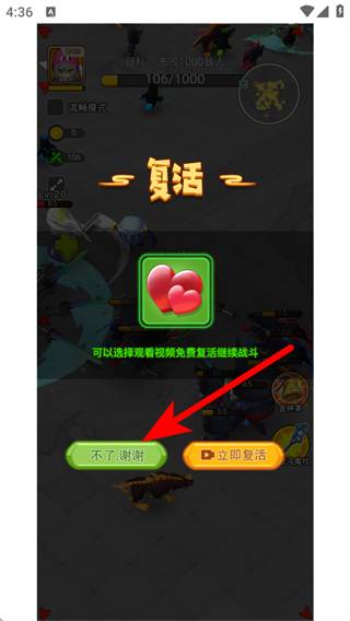 4、若战斗失败出现复活界面,可选择不了,谢谢结束本局,根据自身需求选择操作以继续体验。