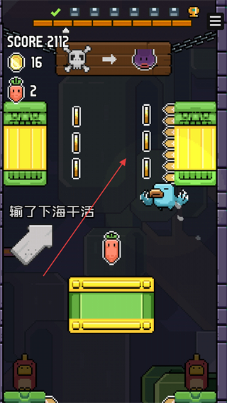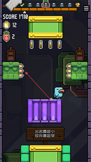 2、避开障碍收集金币,获取萝卜道具,积累分数向关卡目标推进。