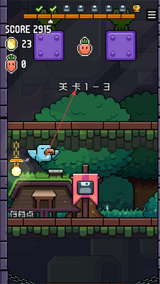 3、进入关卡1-3,收集萝卜道具,找到存档点进行存档,保存当前进度。