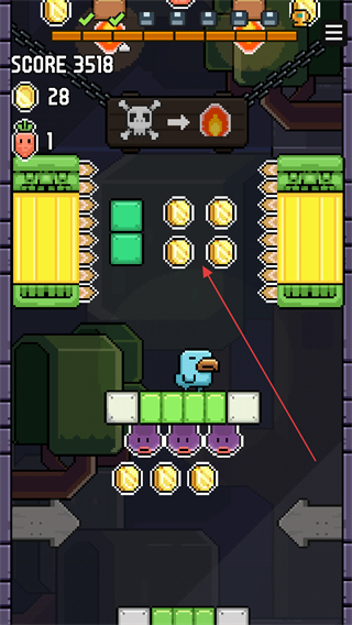 4、在关卡中躲避危险区域,持续收集金币,提升得分推进游戏进程。