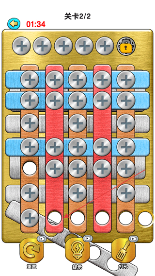 内置提示与重置两项实用功能,遇到难题时可使用提示功能获取通关线索,操作失误时则能点击重置重新开始,降低闯关难度,提升游玩体验。