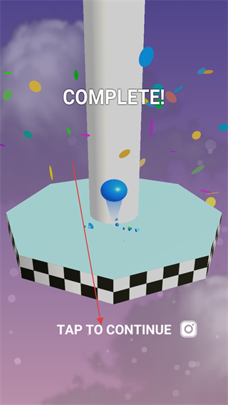 4、小球落至终点平台通关,点击TAPTOCONTINUE进入下一关。