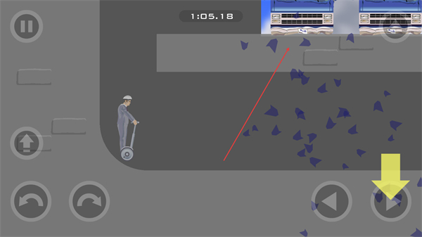 设计多种特色角色与载具,从基础的独轮车冒险者,到坐在购物车上的购物者,再到拥有飞行能力的喷气式轮椅驾驶员,不同载具有着截然不同的操控手感,为闯关增添变数。