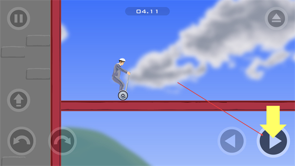 1、操控独轮车角色移动,按箭头提示操作,在钢架上保持平衡,推进关卡。