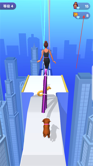 3、带着高鞋跟和钥匙,继续前进,注意下方小狗等元素,保持平衡。