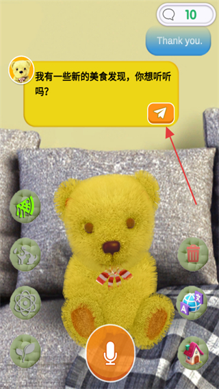 4、在输入框填写内容后,点击发送按钮,毛绒熊会对输入的文字内容进行互动回应。