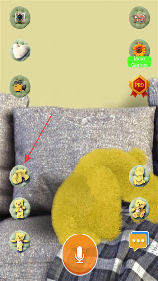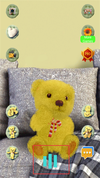 3、点击小熊图标按钮,可触发毛绒熊的特定互动动作,其他同类按钮对应不同动作。