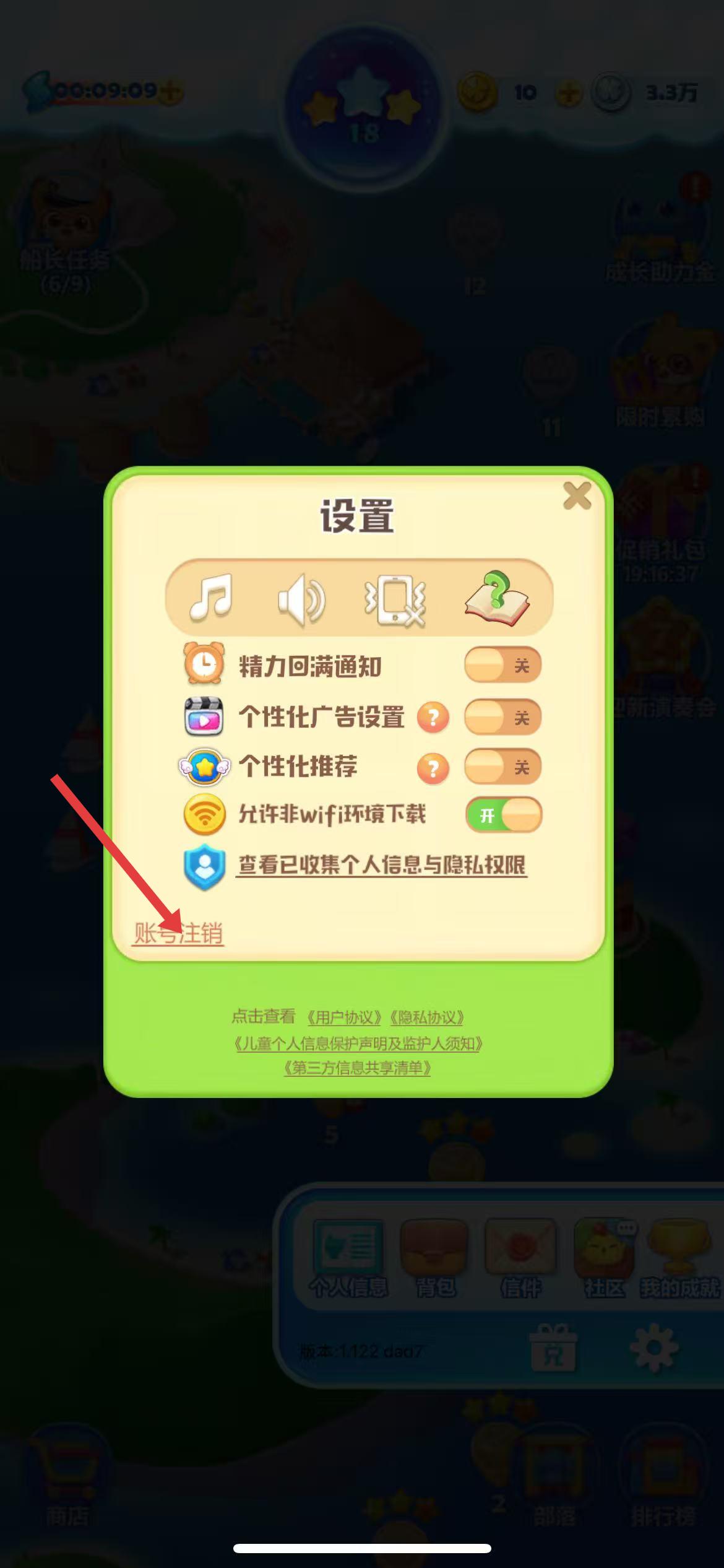 3、点击账号注销选项,按照游戏后续弹出的提示和要求,即可完成账号注。