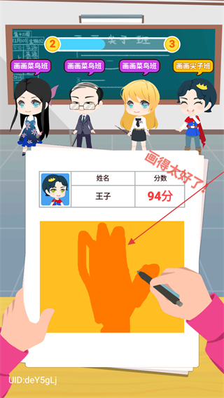 4、查看王子的作品评分94分,完成本轮画作的评分流程。