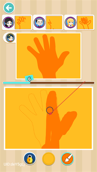 1、根据上方手掌图案,用下方工具沿着虚线绘制手掌,完成画作。