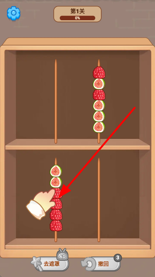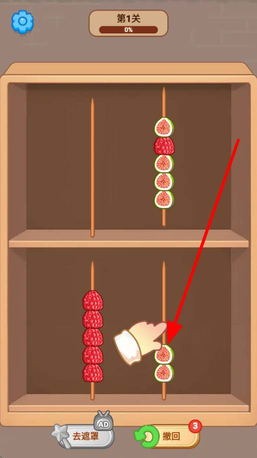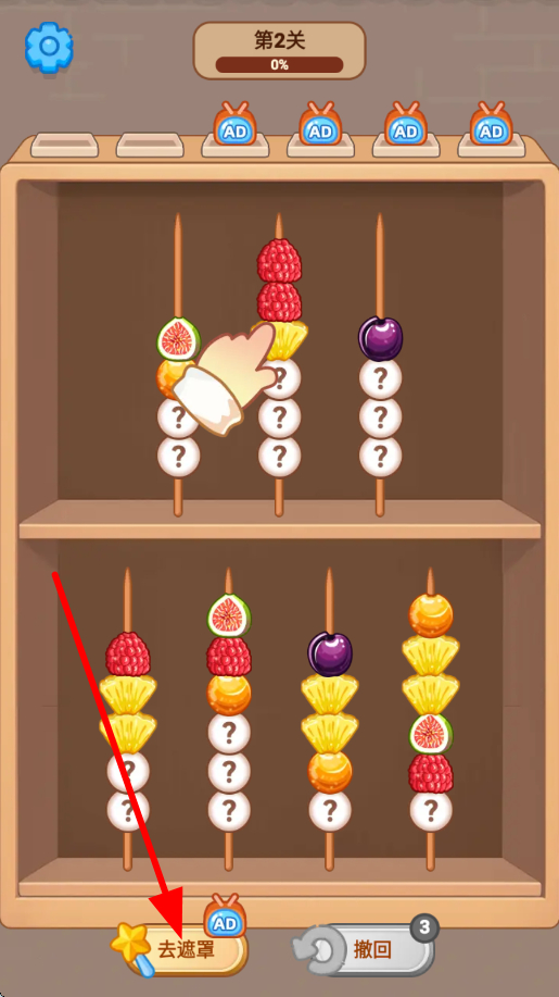 2、在摆放水果过程中,若操作有误,可点击撤回按钮,能取消之前的错误操作,让玩家有机会重新调整水果的摆放位置,保障糖葫芦串制作的准确性。