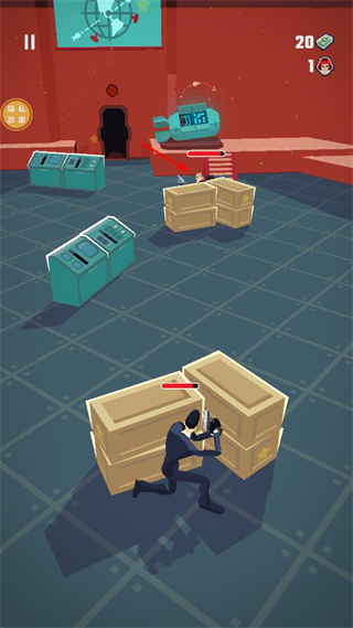 3、攻击完当前目标后,操控角色移动至其他遮挡物旁,继续隐藏并寻找下一个待攻击的目标。