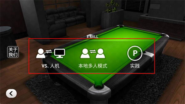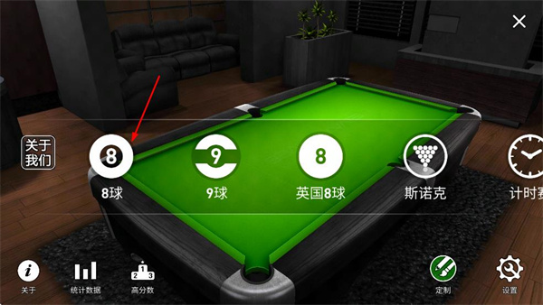 1、在软件界面点击8球选项,进入8球模式的玩法选择页面。