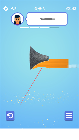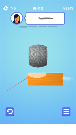 1、选择关卡3进入游戏,根据上方工具形状提示,操控砂轮打磨橙色木块。