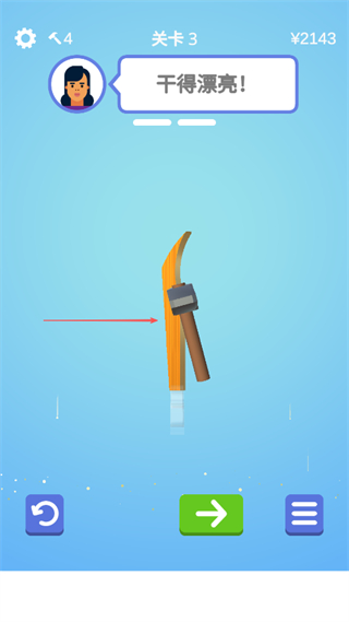 4、打磨完成后,若获得“干得漂亮”评价,点击箭头按钮进入下一关。