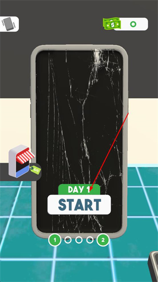 1、点击带有DAY1标识的START按钮,开始第一天的手机修复任务,界面切换至修复操作场景。