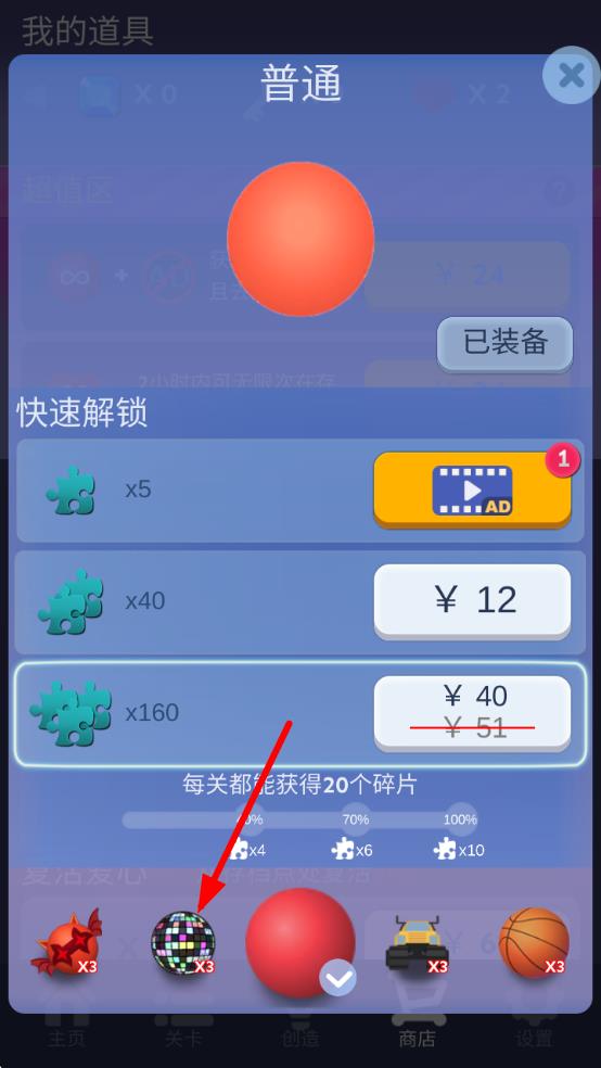 2、在查看界面下方的球样式中,点击想更换的球图标。