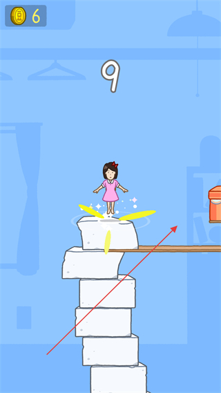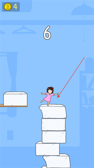 2、女孩跳跃至堆叠的豆腐上,上方数字显示6,持续跳跃积累层数。