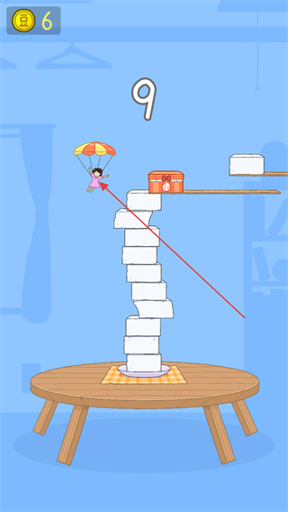 4、堆叠豆腐至目标高度,触发降落伞特效,靠近宝箱获取奖励,推进关卡。