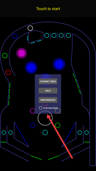 1、进入弹珠台游戏界面,点击Touch-to-start下方的圆形启动按钮,开启弹珠挑战,可按需选择CHANGE-TABLE等功能。