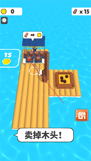 3、从初始的小范围伐木换钱,到扩建领地解锁更多资源点,再到升级木材收货商提升售卖收益,每一步操作都能推动生存进度,最终朝着建造坚固木筏的目标迈进。