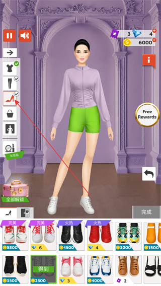 3、切换到鞋类栏,选择运动鞋,完成客户要求的鞋履搭配。