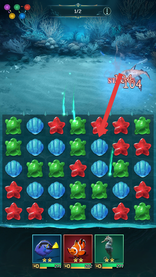 1、在消除关卡中,点击或拖动屏幕上的海龟、贝壳、海星等相同元素,使其连成3个及以上即可完成消除。消除后会产生积分。