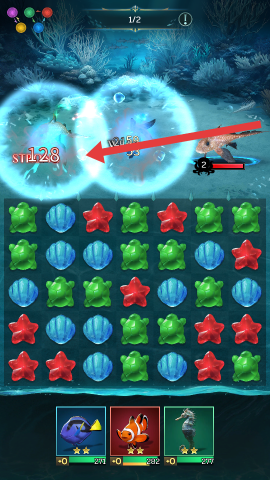 3、目标锁定与节奏把控:点击守关生物锁定攻击目标,避免系统随机攻击;关注敌人血量左侧的反击回合数,在反击前消除棋子积攒怒气,为攻击做准备。