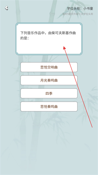 3、题目问下列音乐作品中由柴可夫斯基作曲的是,需从选项中选对应作品答对题。