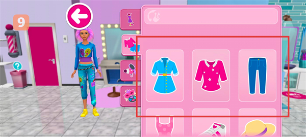 1、进入芭比娃娃屋历险的美发室场景,点击场景内的理发椅,从角色列表中挑选想要装扮的角色。