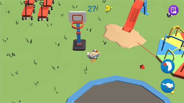 1、进入游戏后通过滑动左侧屏幕,唤出轮盘控制大鹅的移动。