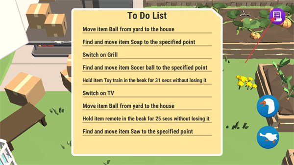 2、将大鹅的嘴对准物品,点击右侧的张嘴按键可以叼起物品。