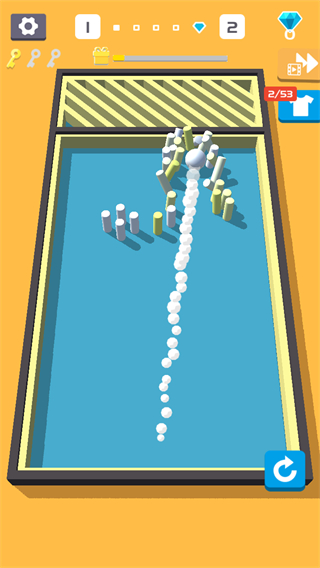 借助物理碰撞原理设计关卡,小球的撞击轨迹与力度相关,需要简单预判与规划,让挑战既轻松又带有一定的策略性。