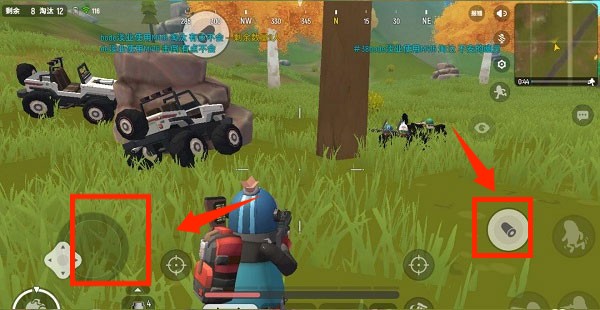 3、拾取好资源后,可以找人打架,左下角为移动按钮,右下角为开火按钮。