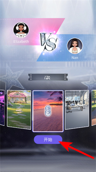 3、选择对决场景后,点击开始按钮,进入穿搭比拼关卡。