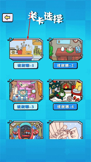 2、在关卡选择界面,点击该放哪-1选项,进入对应的物品归位关卡。