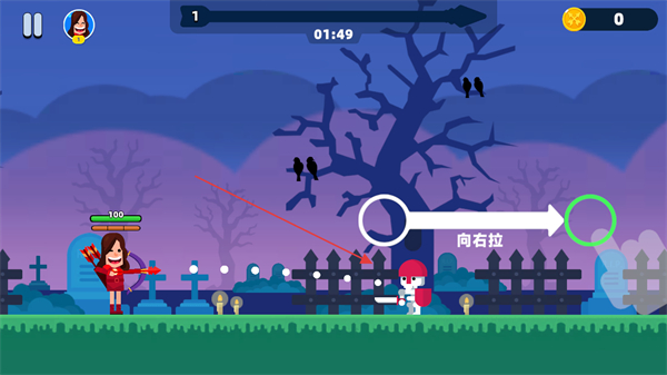 1、按提示向右拉瞄准,攻击敌方角色,推进战斗并积累金币。
