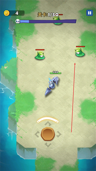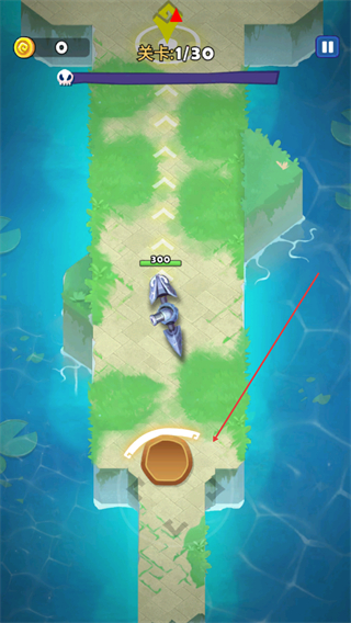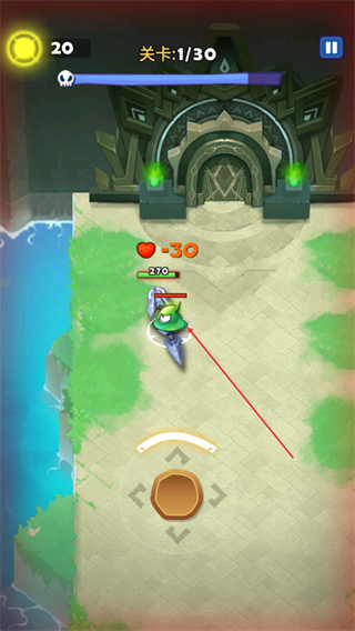1、进入关卡1/30,操控蛇形武器沿路径前进,收集金币,推进关卡。