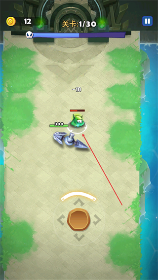 4、向关卡终点推进,攻击最终敌方单位,减少其血量,向通关前进。