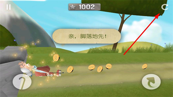 4、若碰撞障碍,可点击右侧重置按钮重新开始关卡,也可利用道具恢复继续滑行,尽量延长滑行距离,挑战更高分数