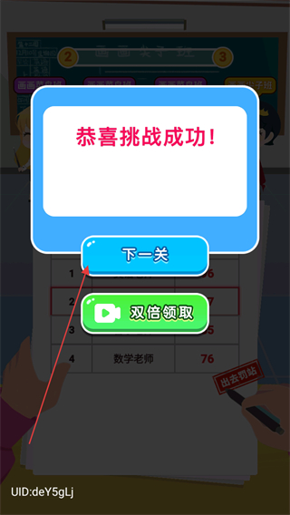 4、挑战成功后弹出提示框,点击下一关进入后续关卡。