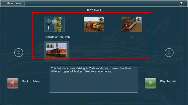 3、选择对应教程后,点击Play Tutorial按钮,开始学习火车驾驶等相关教程。