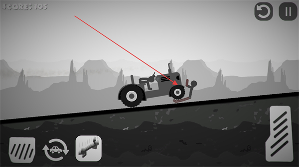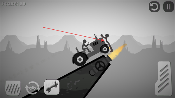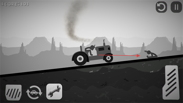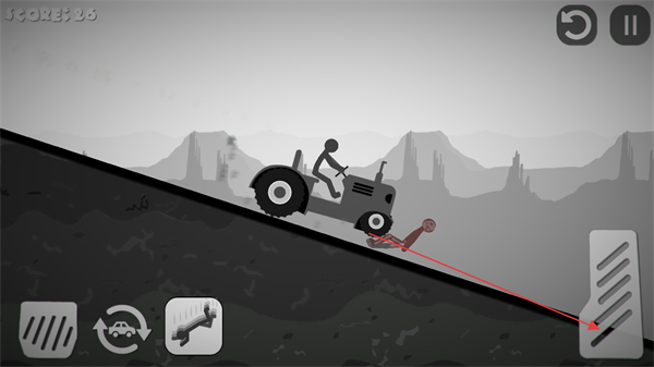 1、操控拖拉机在崎岖地形行驶,利用右侧加速键控制速度,碾压火柴人得分。