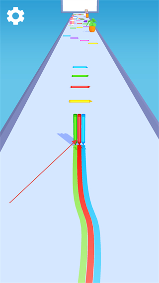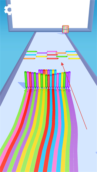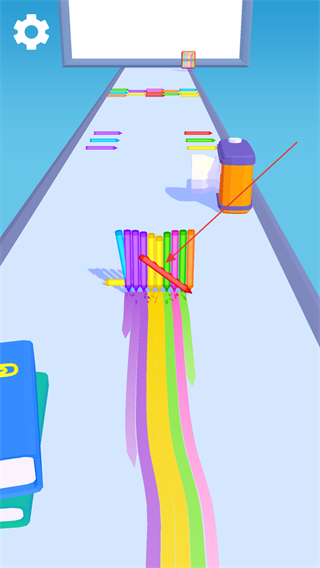 1、操控彩色笔列在通道上移动,收集沿途的同色笔,增加笔列的数量,丰富颜色种类。