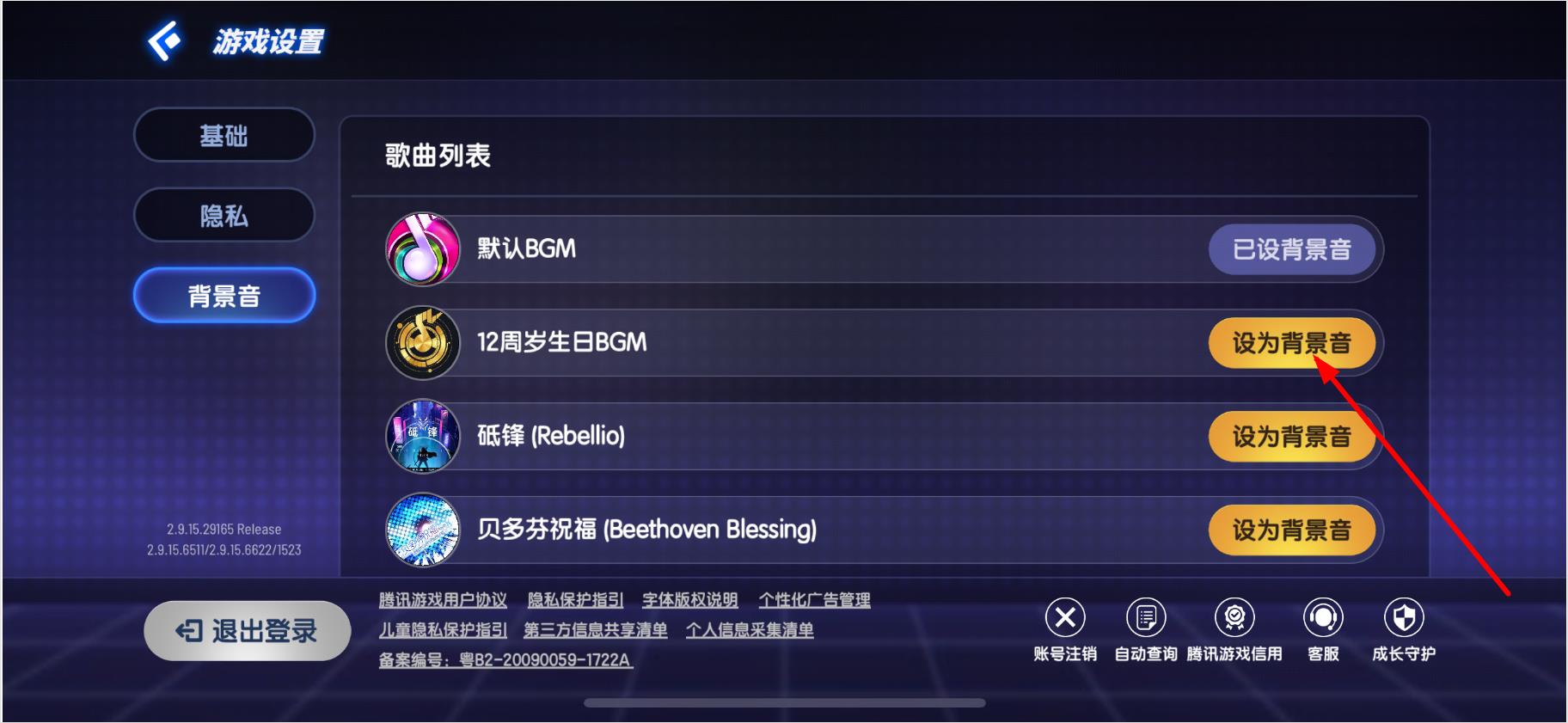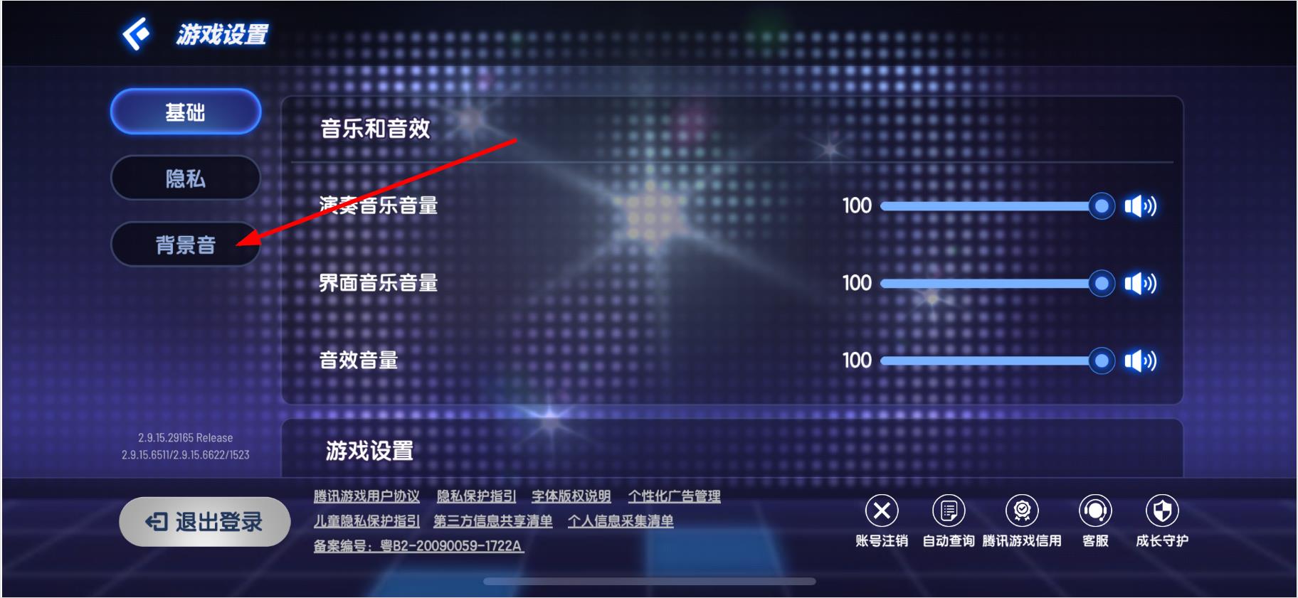 3.进入游戏设置界面后,点击左侧列表中的背景音选项。